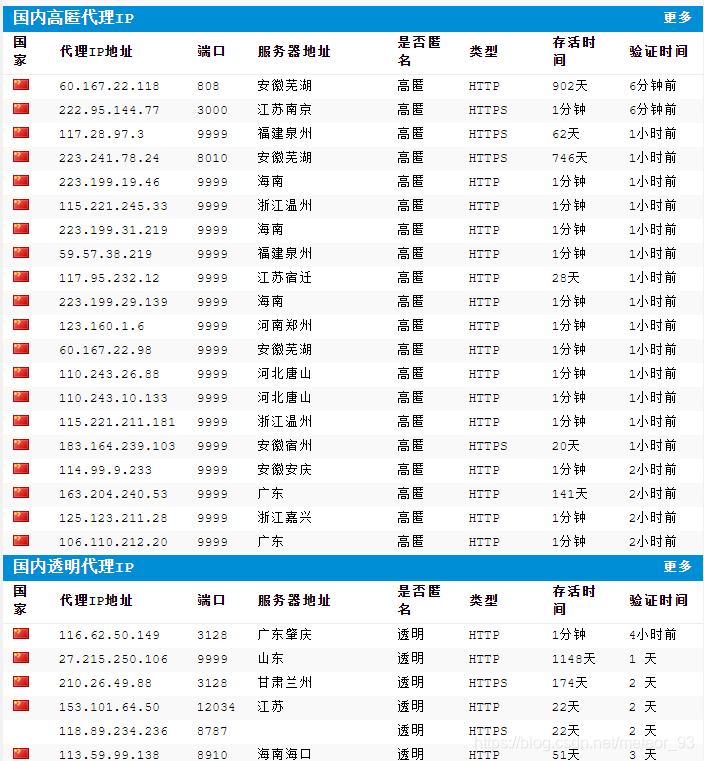 代理的站点小编就不列举了,是在太多,我们随便打开一个免费代理的网站: