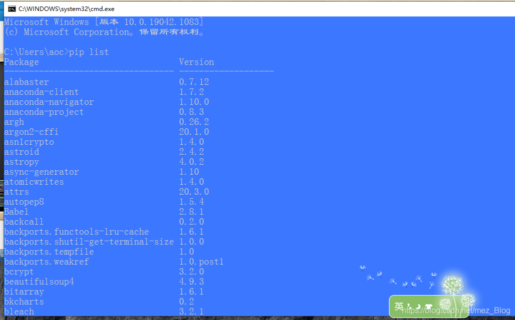 此时已经安装完毕,我们用pip list命令进行查看已安装的第三方模块。