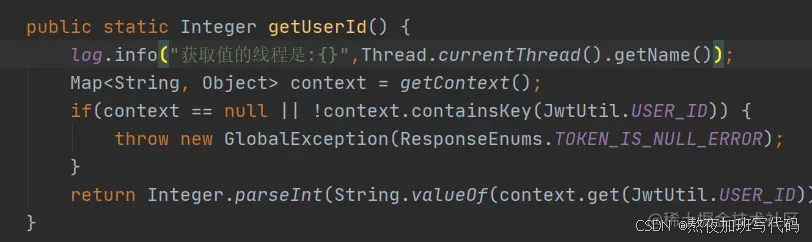 Integer userId = ThreadLocalUtil.getUserId();