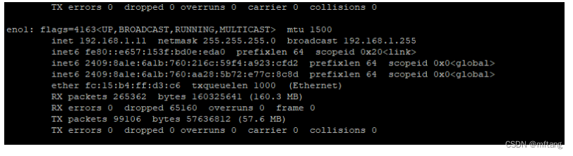执行命令后,终端会打印当前主机所有网卡相关的IP信息,找到主机的实际ip,然后在第三方电脑主机上登录