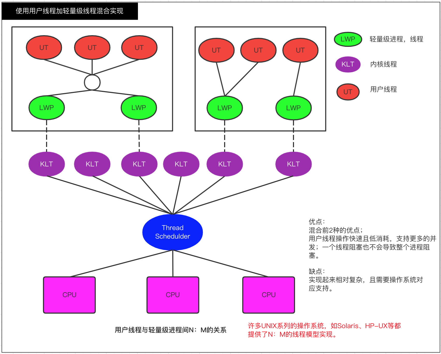 - 各种线程操作(如创建、析构及同步等)都需要进行系统调用,性能消耗高在用户态和内核态来回切换。