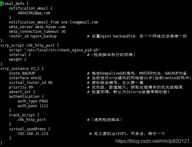 sudo vim /etc/keepalived/keepalived.conf