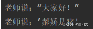 print('老师说;’郝娇是猪\'')#单引号需要转义(里面需要加一个单斜杠 \ )