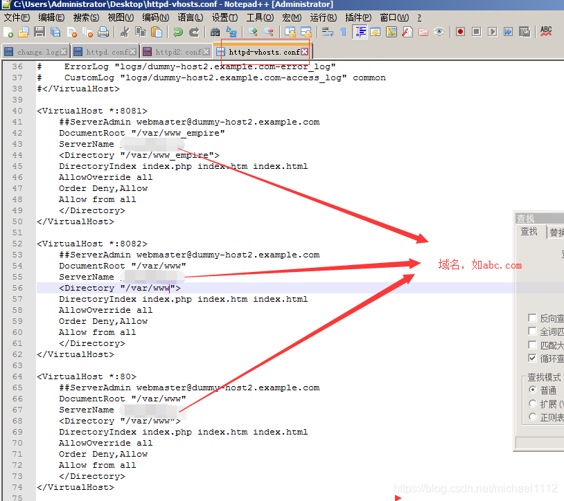 本文的目的:在同一个域名下,通过配置不同的端口,让网站的根目录不同。从而可以访问多个站点
