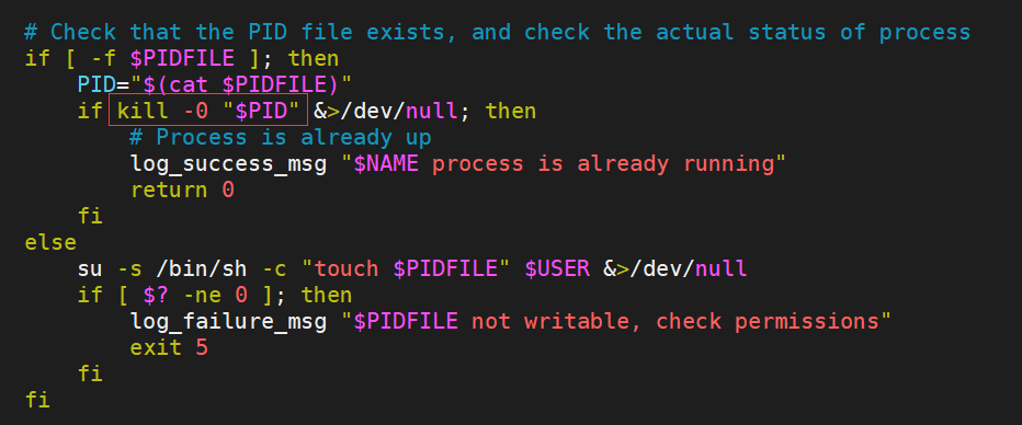 kill -0 pid 不发送任何信号,但是系统会进行错误检查。