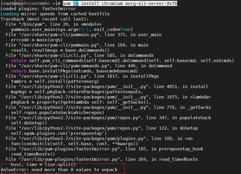 yum install -y chrony 报错: ValueError: need more than 1 value to unpack