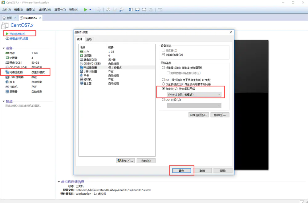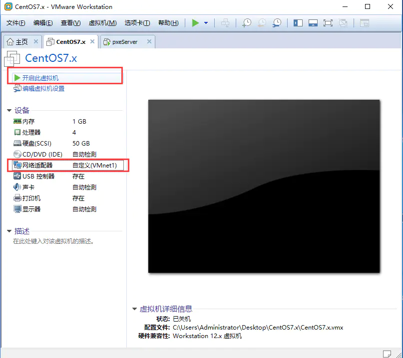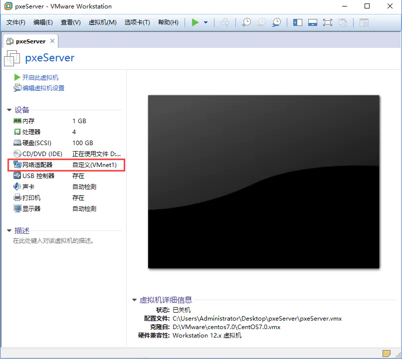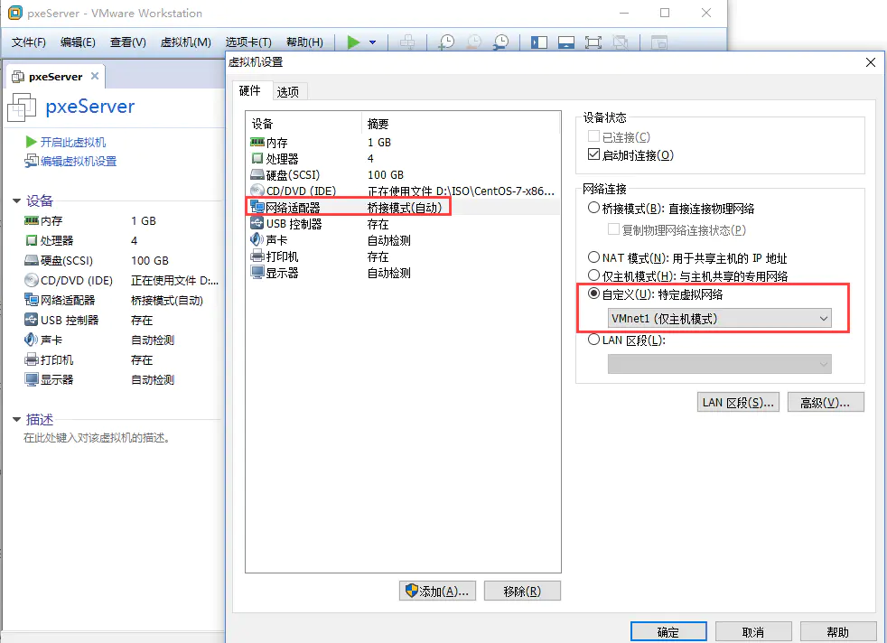 我们配置pxe的安装网段为 192.168.2.0/24,设置在自定义网络VMnet1