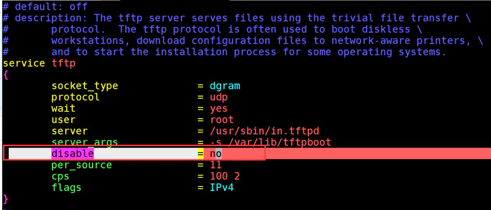 # vim /var/lib/tftpboot/pxelinux.cfg/default