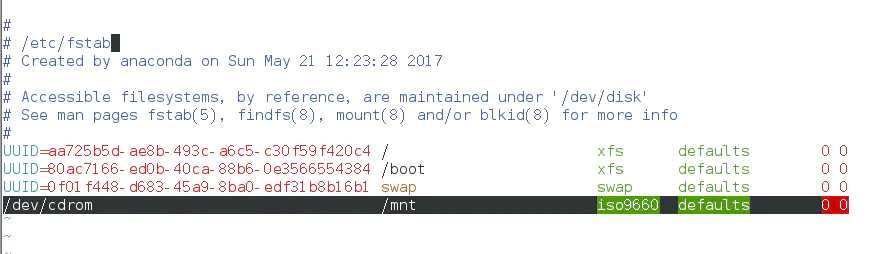 /dev/cdrom /mnt iso9660 defaults 0 0
