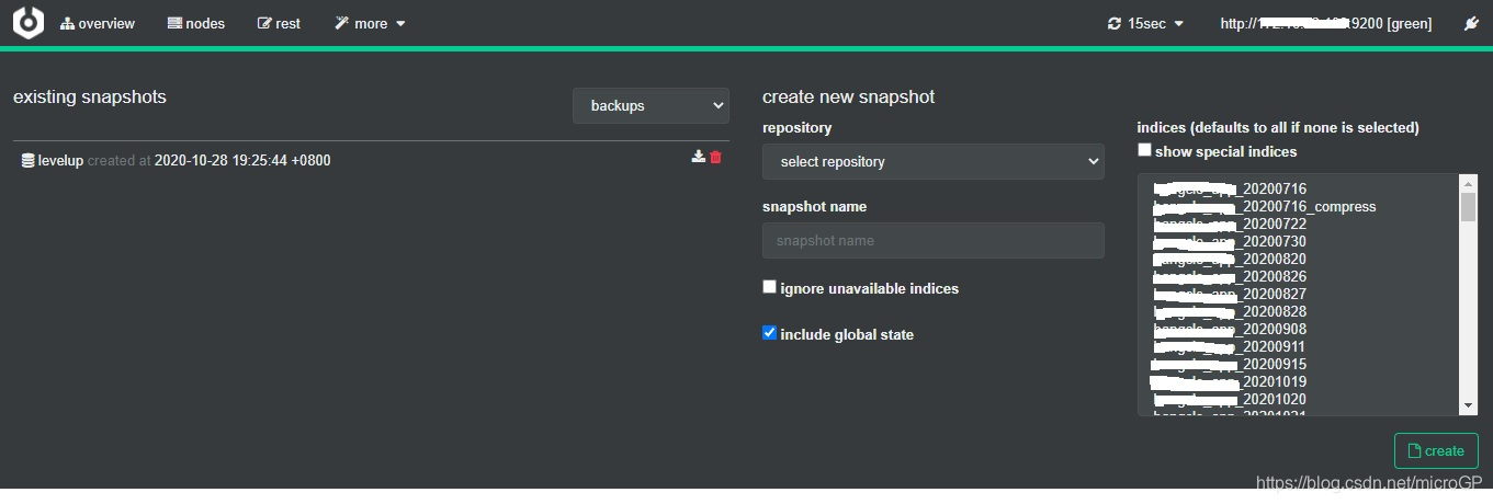 snapshot可以通过kibana来生成,也可以通过cerebro来进行创建: