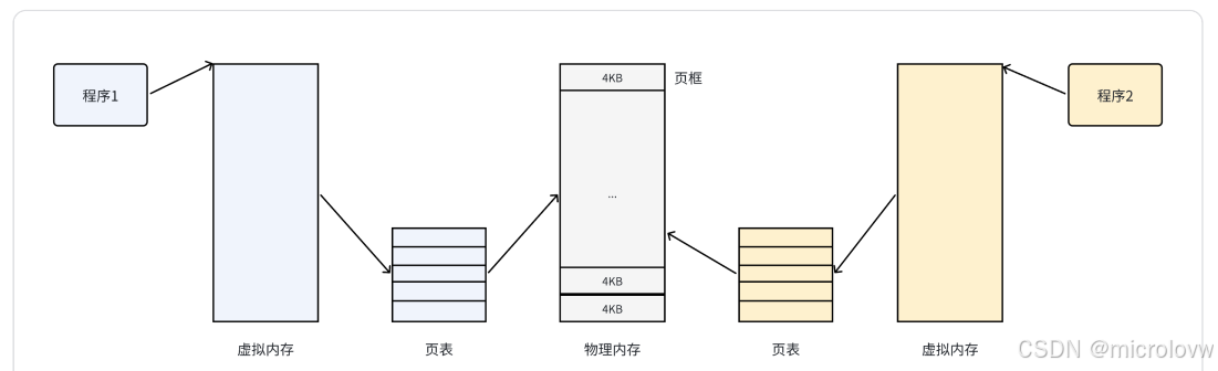 总结⼀下,其思想是将虚拟内存下的逻辑地址空间分为若⼲⻚,将物理内存空间分为若⼲⻚框,通过