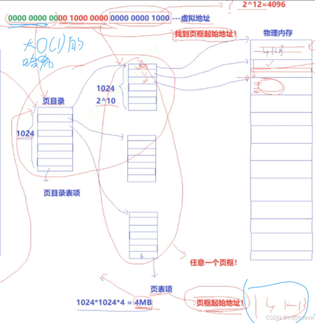 虚拟地址后12位是偏移量,正好是4kb的偏移量找到的第一个字节的位置之后,剩下的就按类型找完一整个数据。