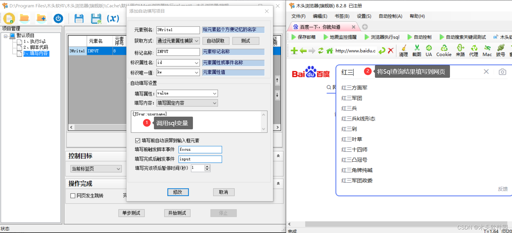 在网页填表步骤中,可直接引用JS变量的值。