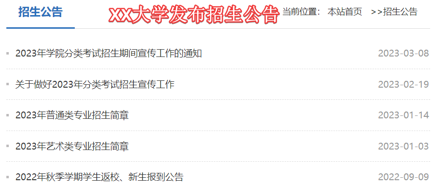 使用软件监测各高校招生信息,首先是找到关注的学校官网,进入该学校的招生公告栏目,得到招生公告网址。