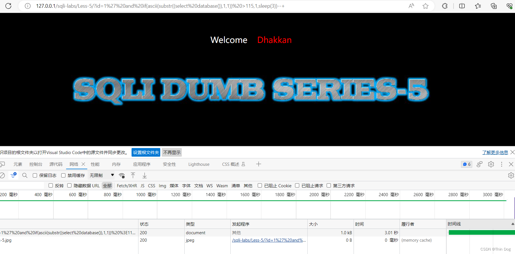 主要原理和布尔盲注一样,比较大小,如果为真就返回1,为假就沉睡3秒,通过网络请求可以看到请求有多少秒