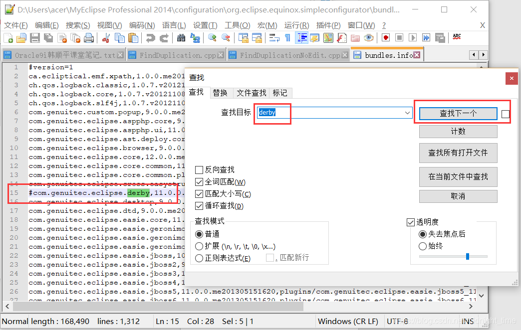 右键桌面myeclipse 快捷方式->打开文件所在位置->进入configuration/org.eclipse.equinox.simpleconfigurator->右键打开bundles.info->Ctrl+F搜索derby,将所在行注释(行首加#)->保存