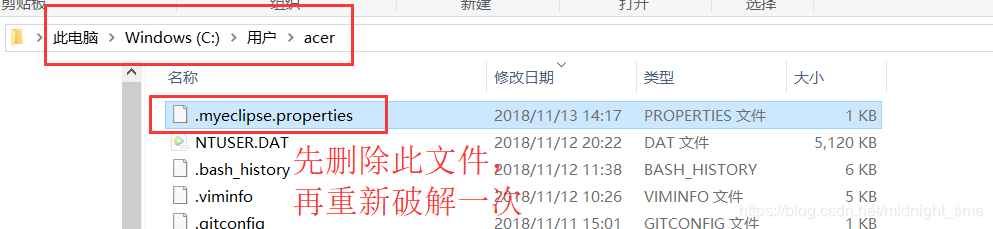 只需要把C盘,用户,你的用户名,里面的.myeclipse.properties文件删除,然后再次使用破解机进行一次破解(具体破解步骤在下载资源里面有详细介绍)