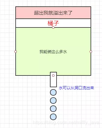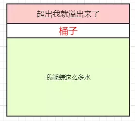 比如,现在我有一个桶子,绿色那块是我能装水的容量,如果超过我能装下的容量,再往桶子里边倒水,就会溢出来(限流):