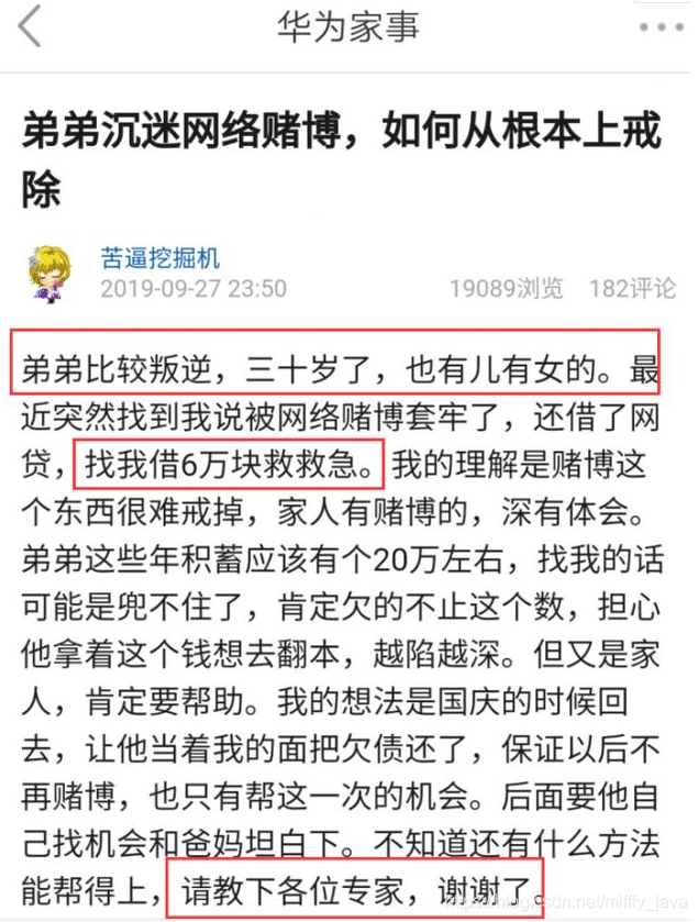 华为一员工面临弟弟因赌博欠债的借钱请求,担忧其无法戒除恶习,网友建议不可轻易资助,应让其承担后果。