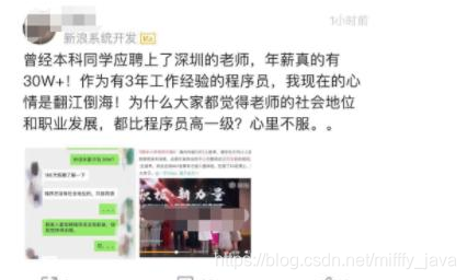 最近在职业论坛看到这样一个热门的帖子,“女子吐槽:本科同学应聘上深圳老师年薪30万,凭什么地位比程序员高”。到底怎么回事?请往下看。