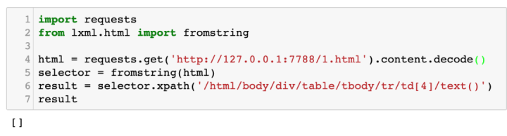 但如果你使用 requests 来爬这个网页,然后使用 XPath 提取电话号码,你就会发现什么都提取不到,如下图所示: