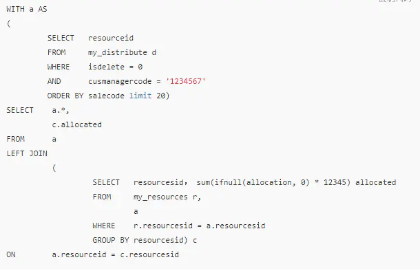 编写复杂SQL语句要养成使用 WITH 语句的习惯。简洁且思路清晰的SQL语句也能减小数据库的负担 。