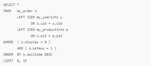 | 1 | PRIMARY | u | eq_ref | PRIMARY | PRIMARY | 4 | o.uid | 1 | NULL |