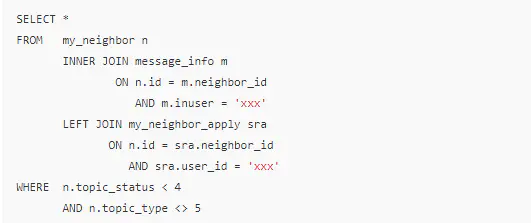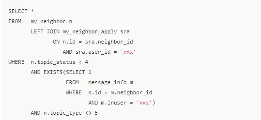 | 2 | DEPENDENT SUBQUERY | m | ref | | idx_message_info | 122 | const | 1 | Using index condition; Usingwhere|