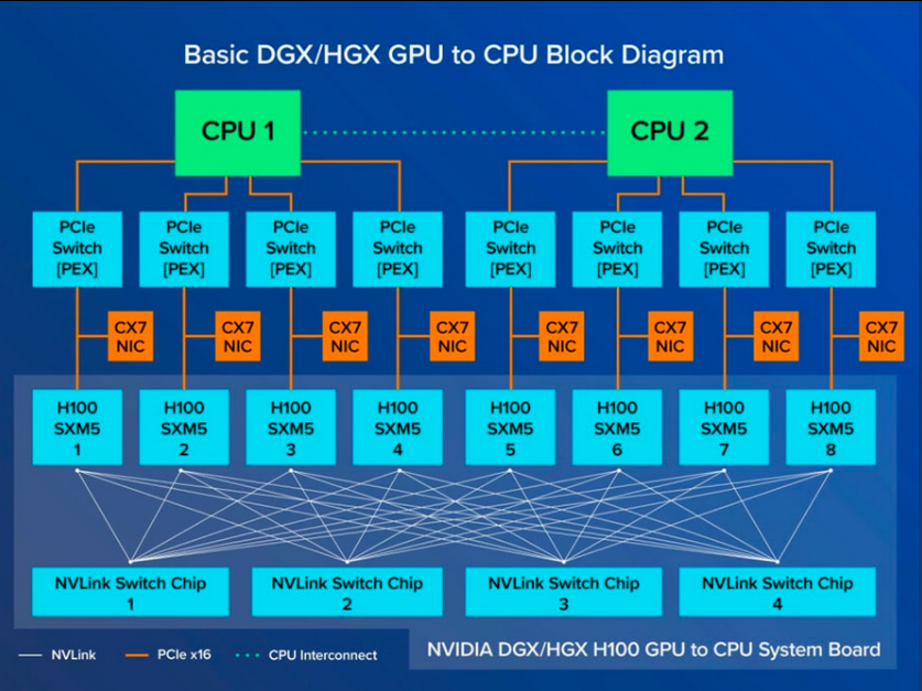 - 在 DGX/HGX 系统中,8 张 GPU 通过 NVSwitch 实现全互联(All-to-All),任意两张卡都能高速通信。