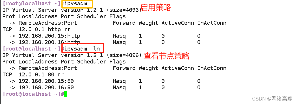 ipvsadm -a -t 12.0.0.1:80 -r 192.168.200.15:80 -m