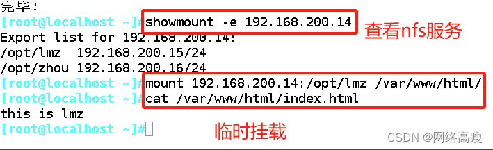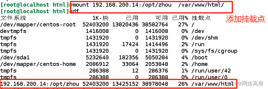 mount 192.168.200.14:/opt/zhou /var/www/html/cat /var/www/html/index.html