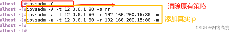 ipvsadm -a -t 12.0.0.1:80 -r 192.168.200.16:80 -m