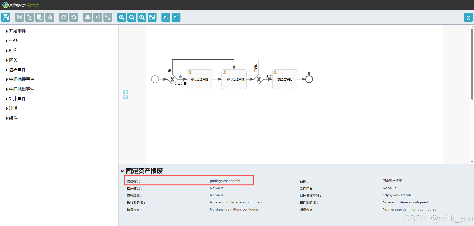 我这里是在activiti-model进行流程图编辑的,如下图所示: