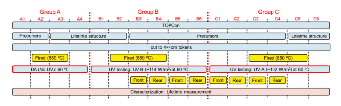 紫外对 TOPCon 前驱体和寿命结构影响的实验流程示意图