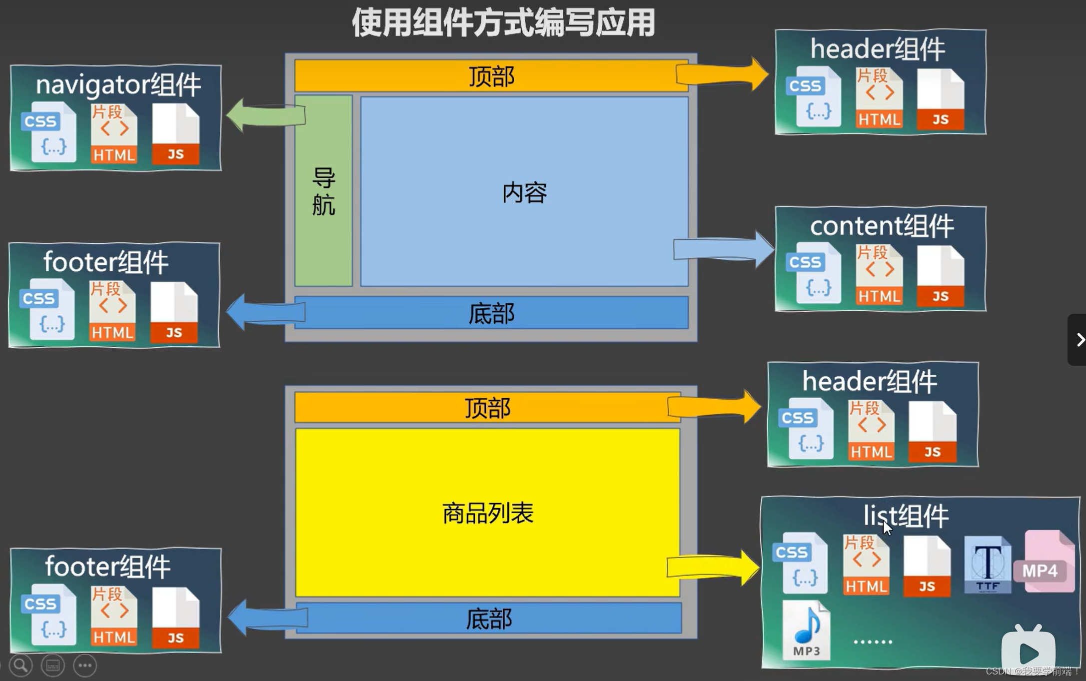 模块是提供特定功能的JS程序,用于复用和简化复杂JS编写,提高运行效率。组件是包含HTML/CSS/JS等的代码集合,用于实现界面的特定功能,便于复用编码和项目简化。模块化应用是所有JS按模块编写,而组件化应用则是功能以多组件形式呈现,两者均提升开发效率。