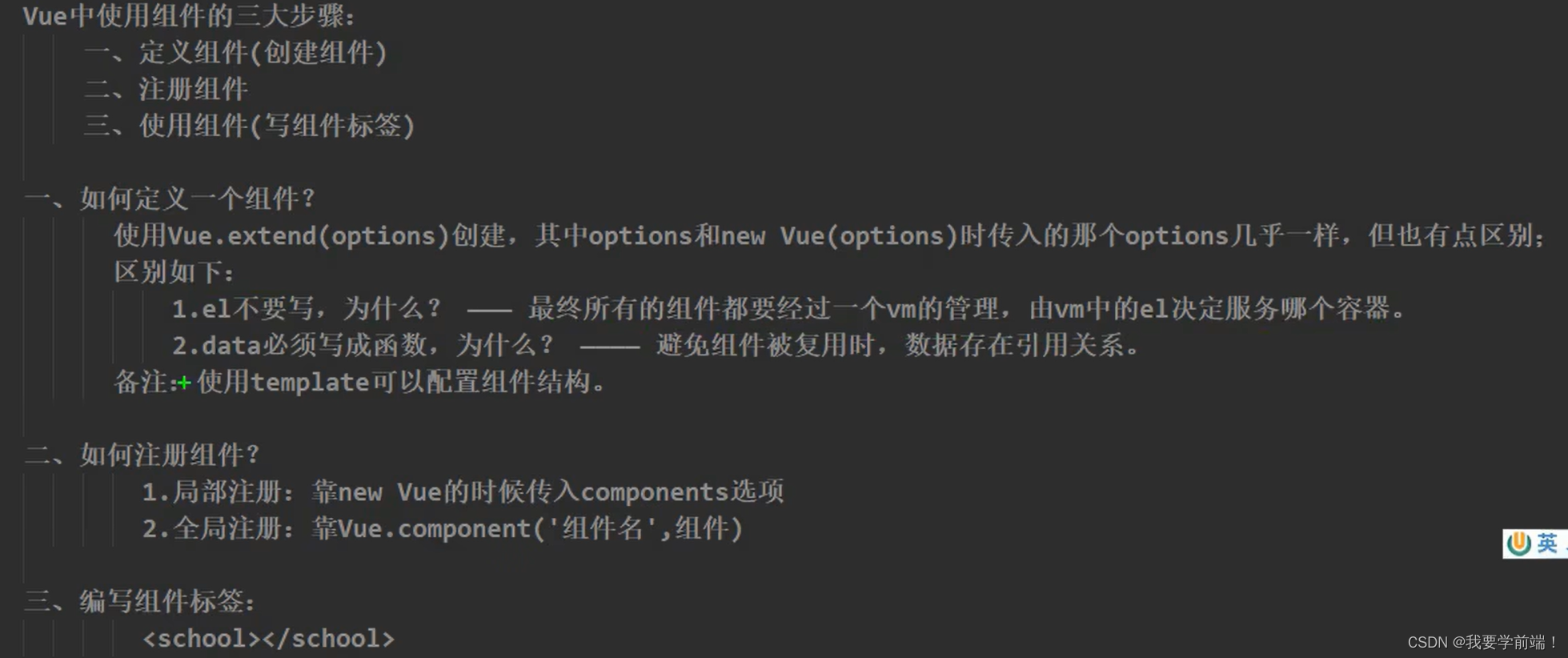 目录 Vue中使用组件的三大步骤 几个注意点 组件的嵌套 Vuecomponent 构造函数 一个重要的内置关系 Vue中使用组件的三大步骤 几个注意点 组件的嵌套 Vuecomponent 构造函数 一个重要的内置关系