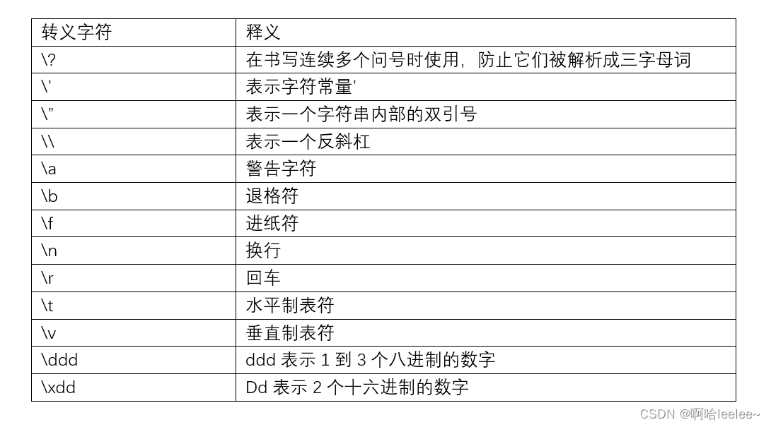 转义字符是以‘\’开头的字符,后面跟一个或几个其他字符,将‘\’后的字符转变为其他的意义。