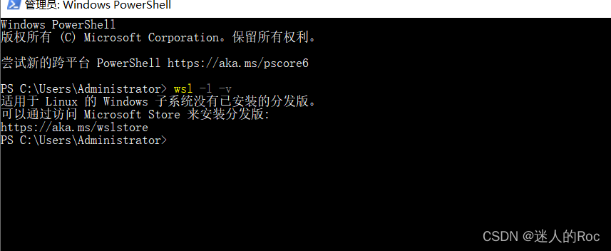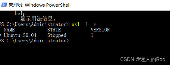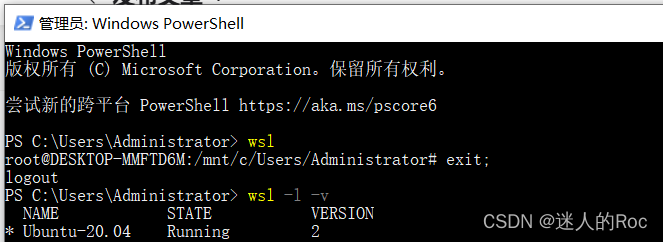 使用任一终端,输入以下命令查看 WSL 版本,确保 WSL 的版本为 2.0:
