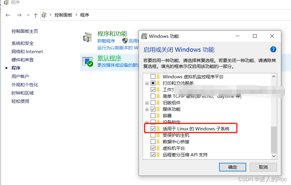 2. 如果之前没有用过 WSL,那么首先需要为Linux启用Windows子系统:
