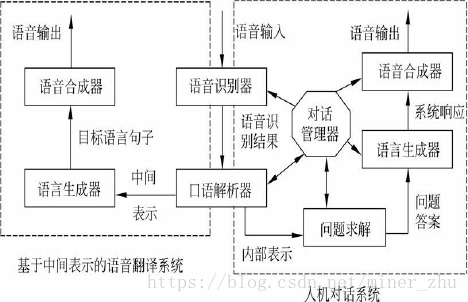 人机对话系统又称口语对话系统(spoken dialogue system)。一个典型的人机对话系统主要包括如下6个技术模块:①语音识别器(speech recognizer);②语言解析器(language parser);③问题求解(problem resolving)模块;④语言生成器(language generator);⑤对话管理(dialogue management)模块;⑥语音合成器(speech synthesizer)。