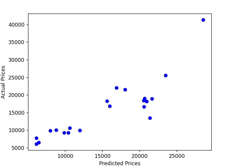 可见把散点图的趋势已经大概描述出来了,并且对于测试集验证之后的得分也还行,整体趋势还能看出来大概是y=x,那么说明预测的价格和实际价格差不多。