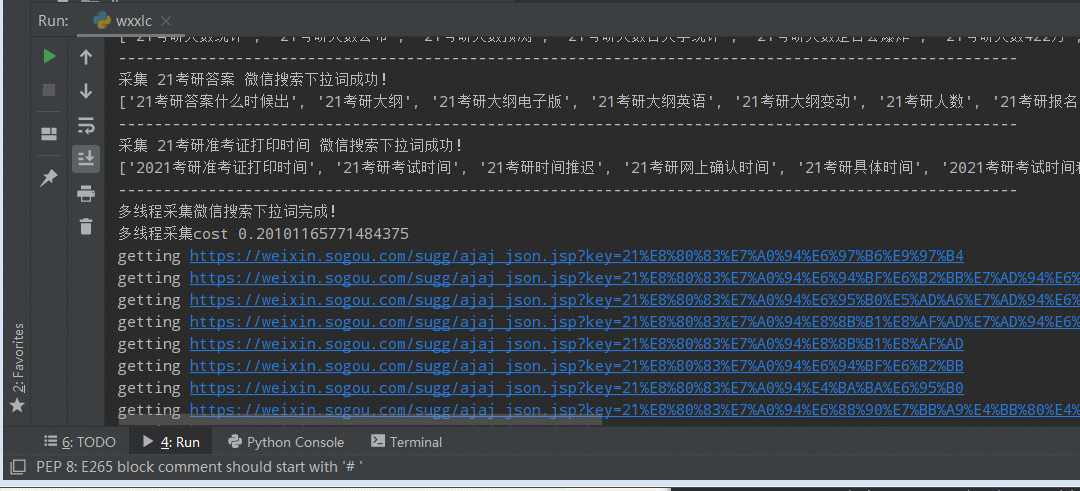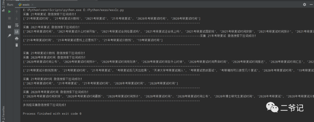 print("多线程采集微信搜索下拉词完成!")