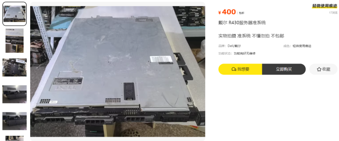 相比其他主机,服务器主机淘汰价位更低,残值率极高,这款服务器主机曾经接近万元,顶配高达数万元,如今准系统版本,残值仅400元即可拿下!