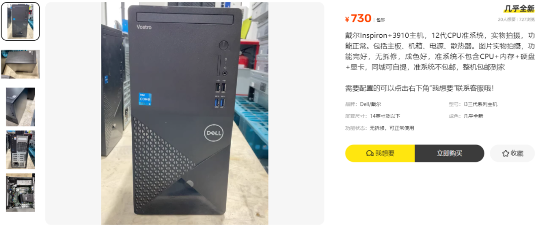 目前这款戴尔商务主机准系统价位在430元,无人接盘降价后的价位,货源大量于贩子手里,价位在730元左右,只能说还有很大的降价空间,起码得腰斩一半。