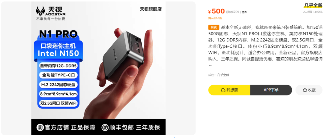 如今新平台,英特尔12代处理器功耗更低,性能也更强,某些低功耗处理器尤其适合作为迷你主机使用,方案也非常成熟,对于移动办公需求人士真的不要太好了,何必再去捡一众传家宝级别,古董老旧平台。比如有刷到某鱼上流出的一款小巧到极致的迷你主机,天钡N1 PRO口袋迷你主机,你有关注过吗?