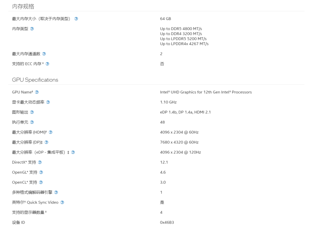 处理器参数方面,三级缓存8MB,基础功耗15W。其采用1个性能核心(P核)+4个能效核心(E核)的混合设计,最高频率4.4GHz(P核)。内存方面,DDR5-4800/DDR4-3200,支持双通道。集成48EU核显,频率1.1GHz,OpenCL跑分约5746分(仅为i7-1260P核显的28%),支持4K/8K视频编解码。