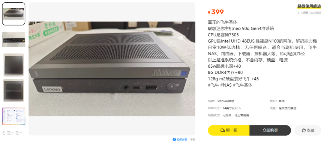 这款机器流出价格为399元,而且还是那令人无语的准系统版本,也有老哥以这个价位捡漏整机。可惜主板阉割过于厉害,作为飞牛使用,也就是更多依赖USB接口,或者使用M2 WIFI 折腾转接了。