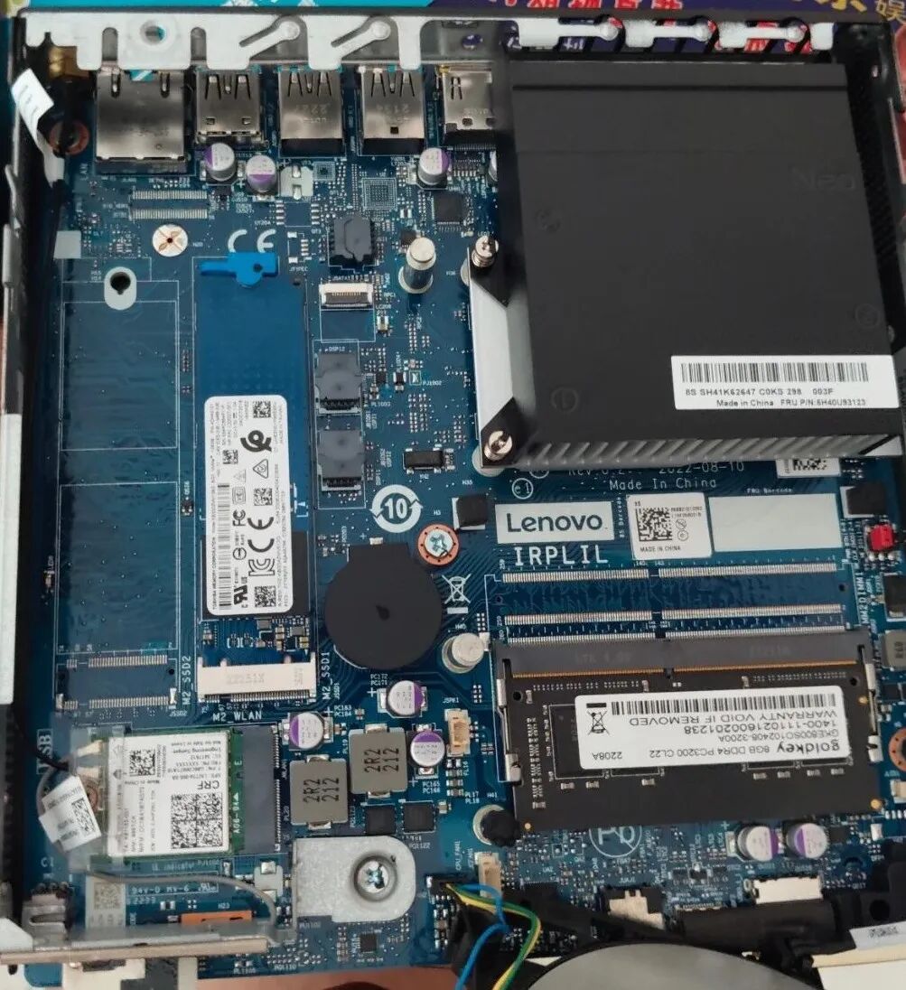 配置扩展方面,很遗憾,这玩意儿的主板阉割的实在是太过于厉害,板载的另一条内存和M2固态硬盘接口都处于缺焊状态,本身早就预留了位置,不知道为什么没有。仅单条内存插槽和单条M2插槽,此外,带有M2 无线网卡接口,支持WIFI和蓝牙,部分有配置Wi-Fi 6 AX201网卡。