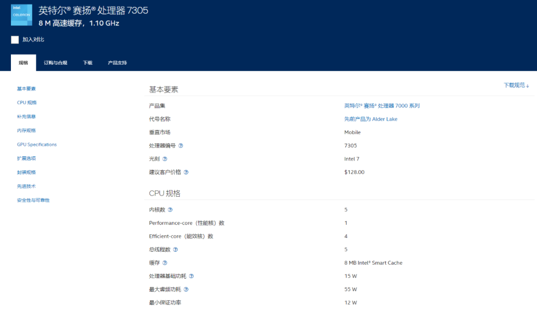 配置参数方面,这款迷你搭载冷门的赛扬7305处理器,这是一款十二代处理器,2022年初发布的入门级移动处理器,采用Alder Lake架构,主要面向轻薄本等低功耗场景,性能定位低于酷睿i3系列。