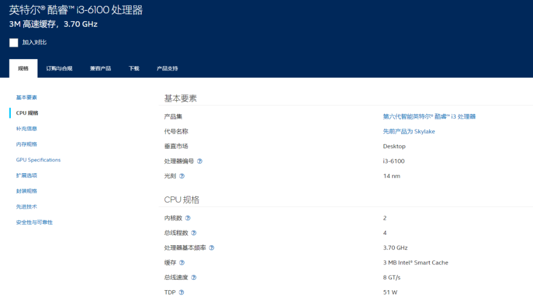 i3-6100 是英特尔于2015年发布的第6代酷睿系列台式机处理器,采用14纳米工艺和Skylake核心架构,主要参数包括双核心四线程设计、主频3.7GHz、三级缓存3MB、热设计功耗(TDP)51W,并集成Intel HD Graphics 530核显,支持4K解析输出显示。